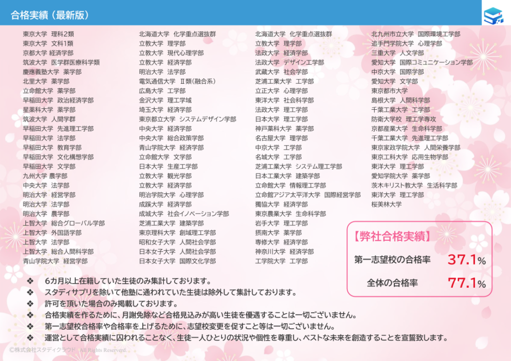 第一志望校合格率は全国平均の3.7倍と、業界トップクラスの実績です。